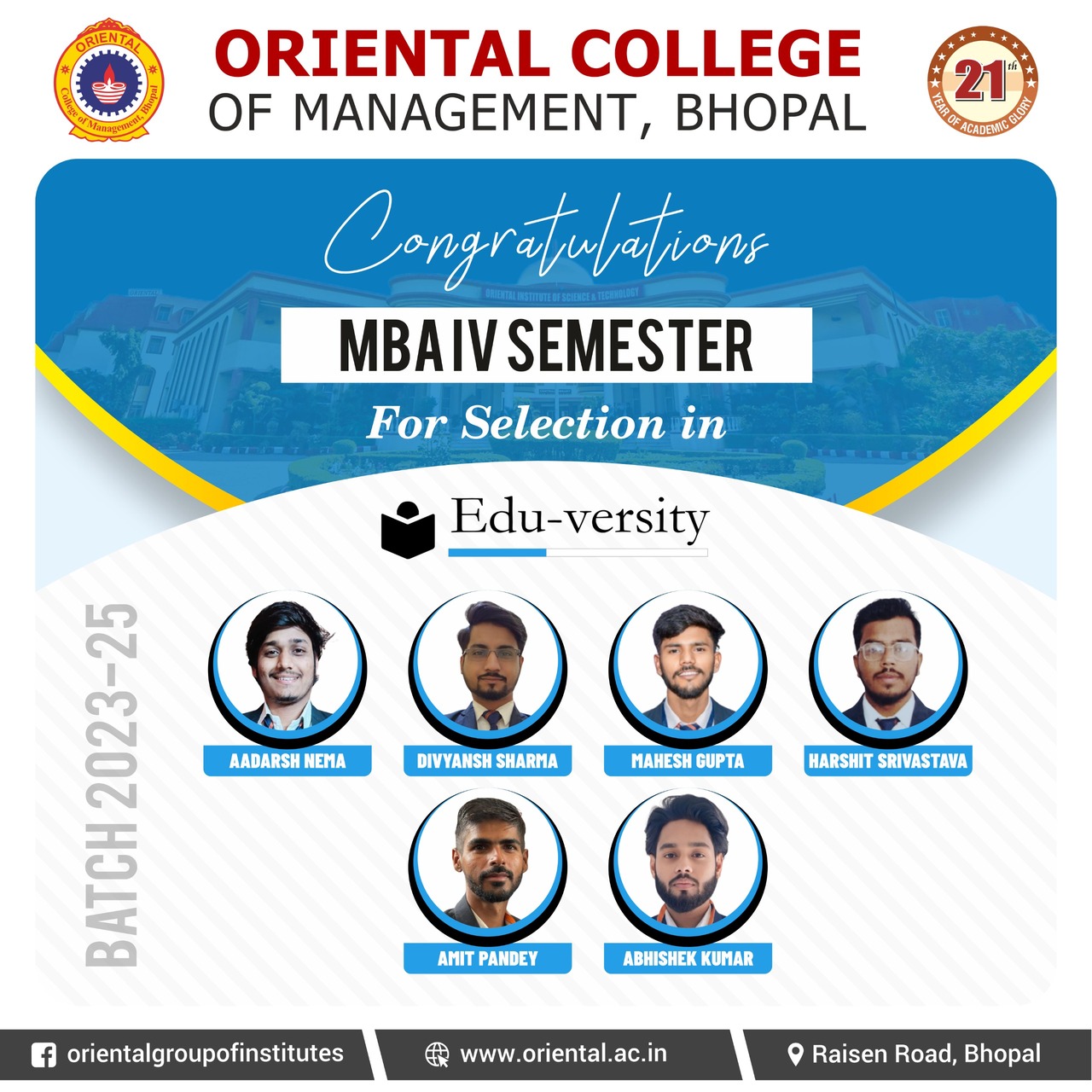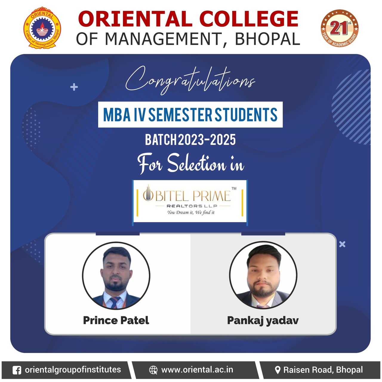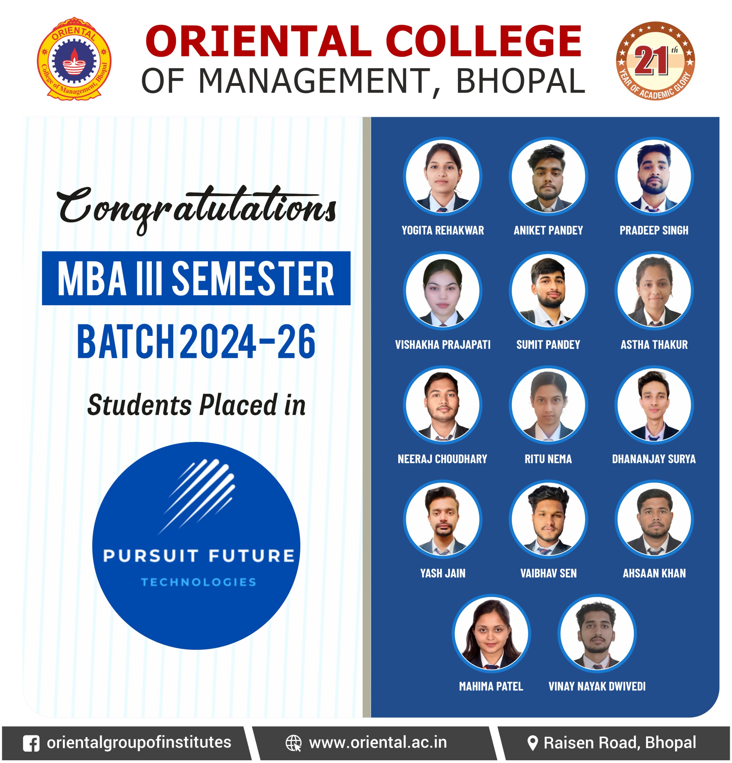 Welcome to the Training and Placement Cell at Oriental College of Management, where we bridge the gap between academic excellence and professional success. Our dedicated team is committed to equipping students with the essential skills and knowledge required to thrive in the competitive job market. Through a blend of rigorous training programs, industry collaborations, and personalized career guidance, we ensure that our graduates are well-prepared to meet the demands of their chosen careers. Our strong network of industry partnerships provides students with ample opportunities for internships, placements, and real-world experience. Join us at Oriental College of Management and take the first step towards a fulfilling and prosperous career.